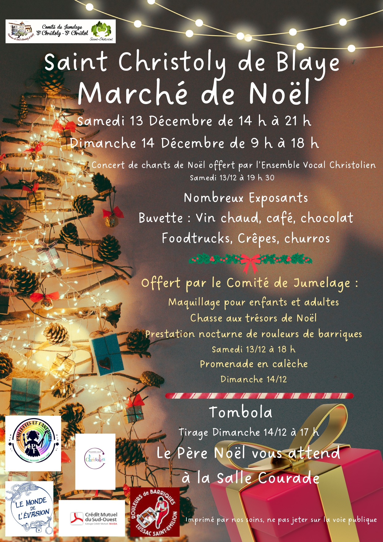 Concert de chants de Noël offerts par l'ensemble vocal Christolien : Samedi à 19h30.