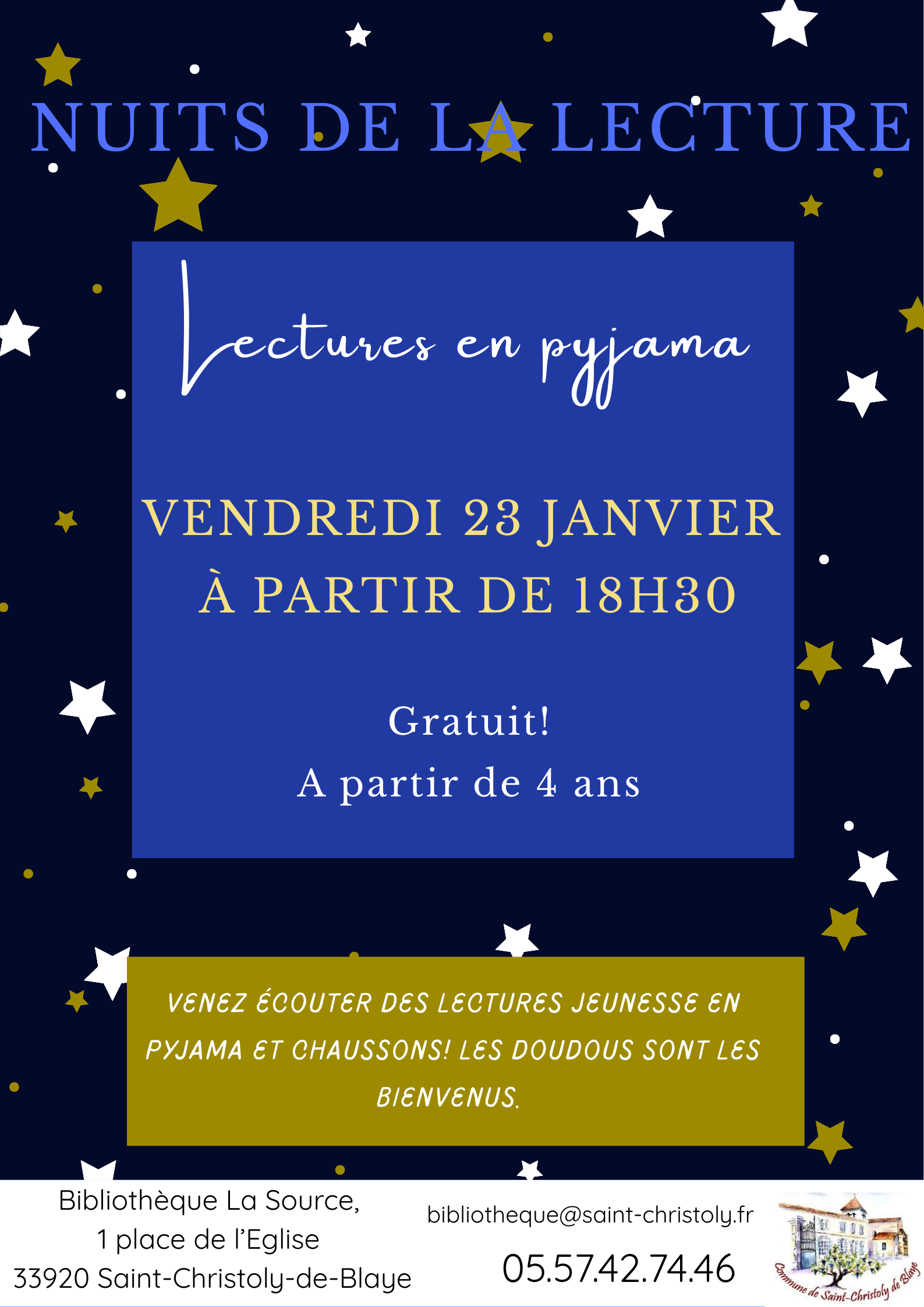 Venez écouter des lectures jeunesse en pyjama et chaussons! Les doudous sont les bienvenus.