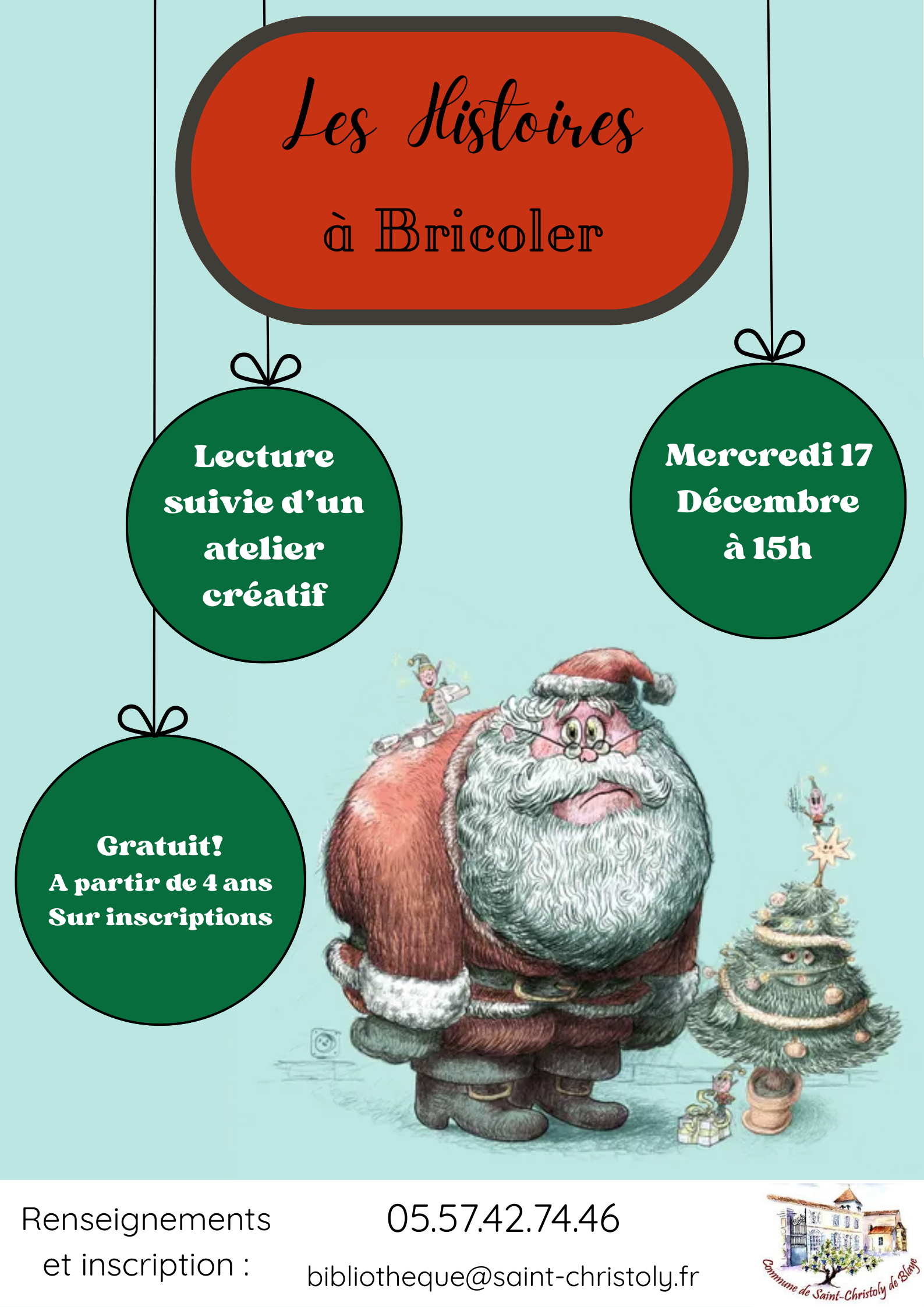 Une animation jeunesse aura lieu à la bibliothèque le mercredi 17 décembre à 15h : une Histoire à Bricoler spécial Noël !